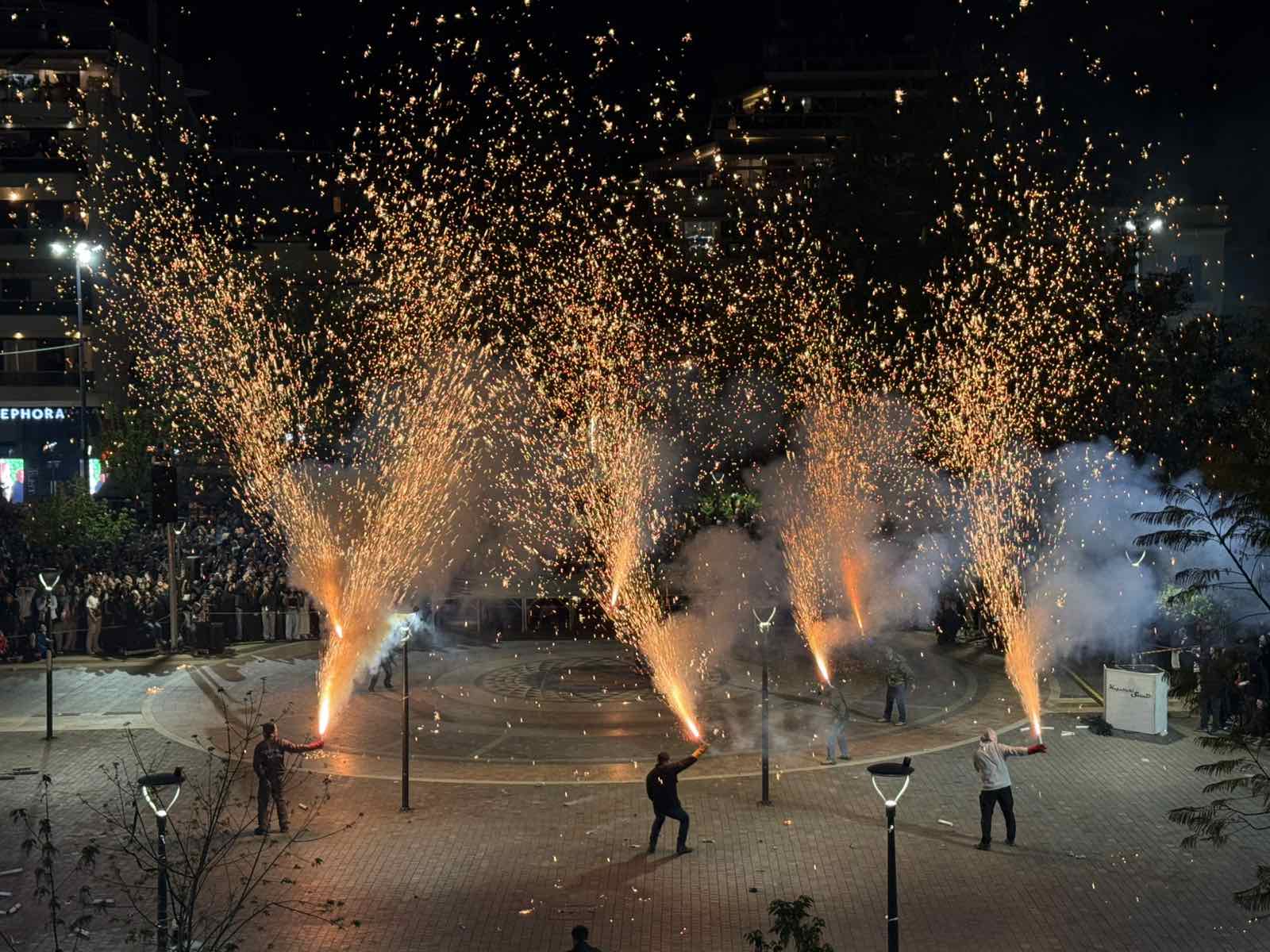 Μια νύχτα που θύμιζε… μέρα έζησε για άλλη μια φορά το Αγρίνιο, καθώς τα χαλκούνια πρόσφεραν ένα μοναδικό και εκρηκτικό υπερθέαμα στην κεντρική πλατεία της πόλης, αμέσως μετά τη συνάντηση των Επιταφίων.