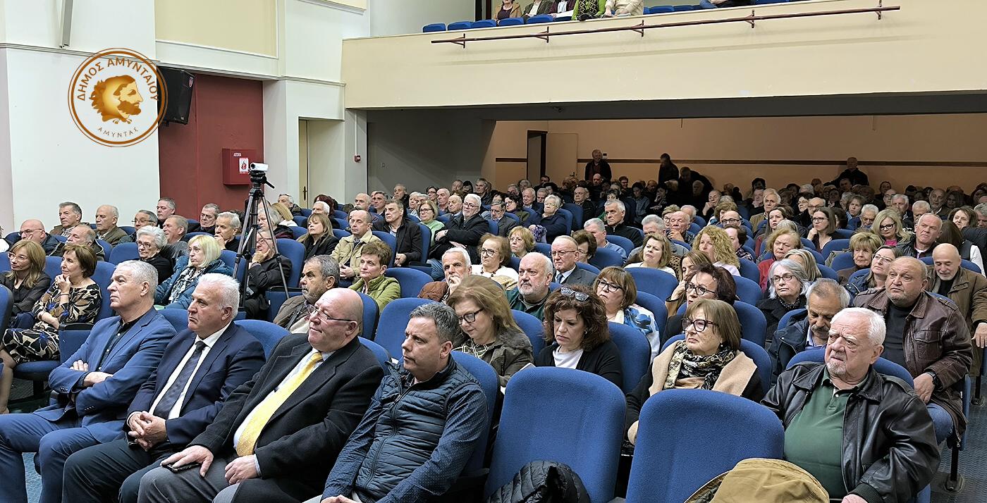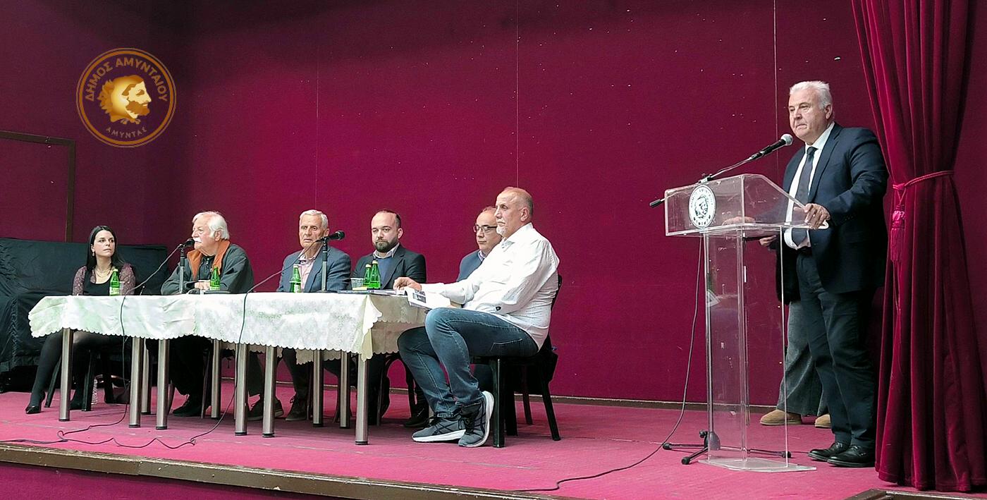 Την εκδήλωση χαιρέτησαν ο Δήμαρχος Αμυνταίου, Ιωάννης Λιάσης και ο Αντιπεριφερειάρχης Πολιτικής Προστασίας, Κλιματικής Κρίσης και Π.ΑΜ. Π.Σ.Ε.Α. Ιωάννης Κιοσές.