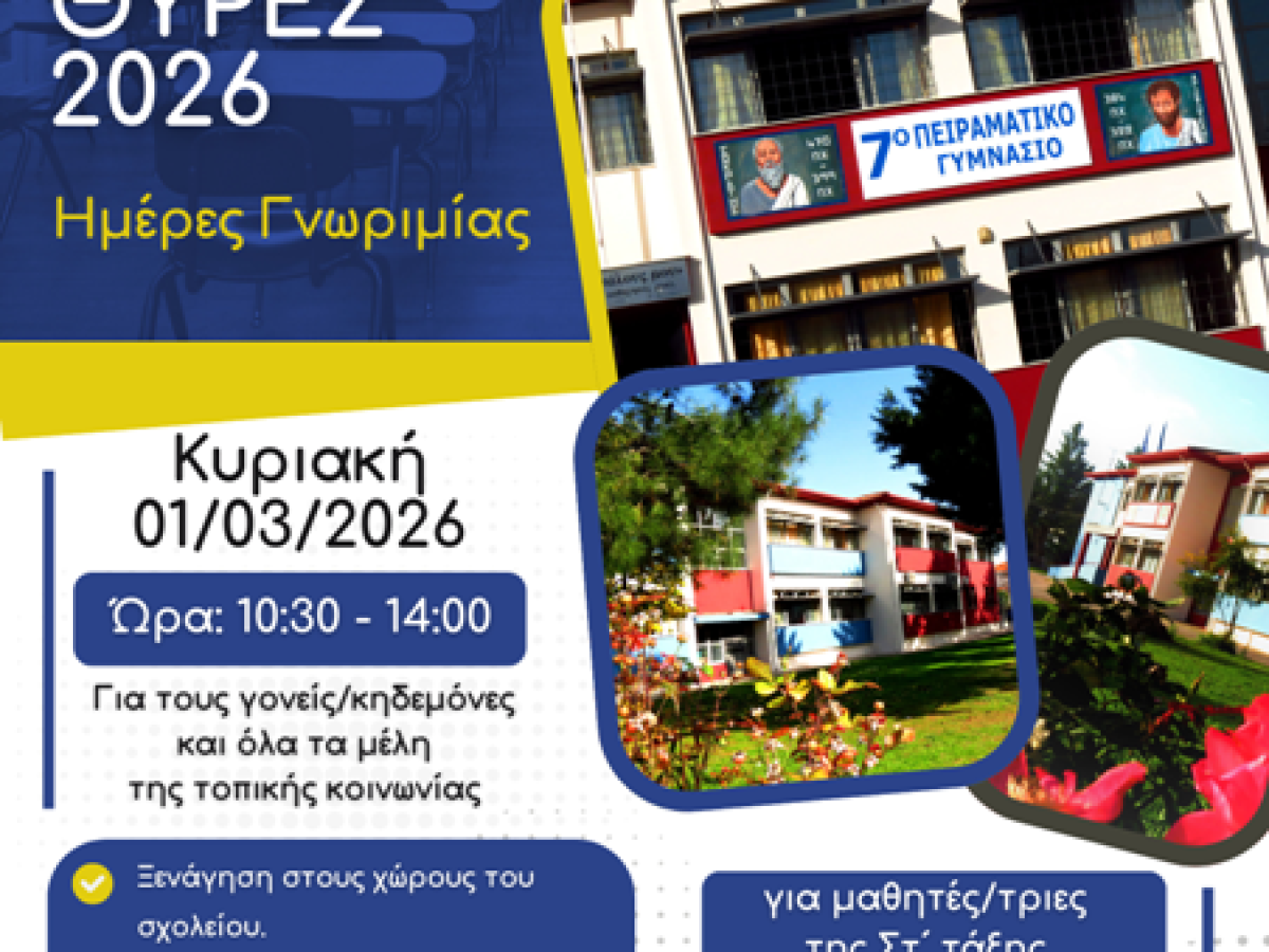 Το 7o Πειραματικό Γυμνάσιο Τρικάλων προσκαλεί τα μέλη της τοπικής κοινότητας