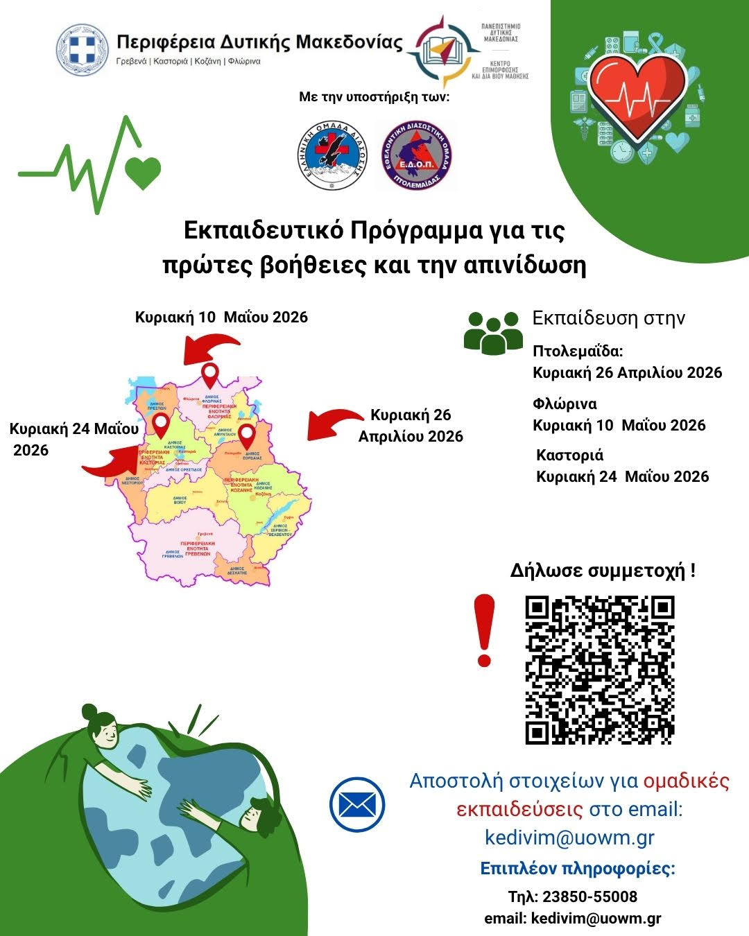 Οι επόμενες εκπαιδεύσεις έχουν οριστεί για την Κυριακή 26 Απριλίου 2026 στην Πτολεμαΐδα, την Κυριακή 10 Μαΐου 2026 στη Φλώρινα και την Κυριακή 24 Μαΐου 2026 στην Καστοριά.
