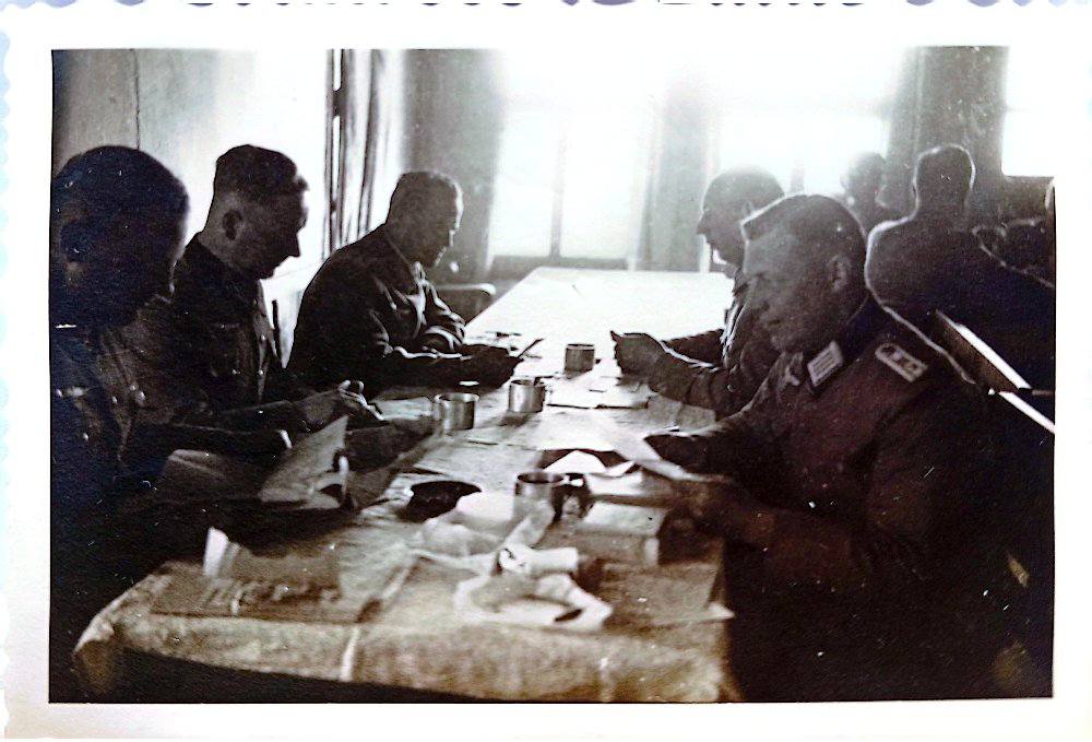 Η φωτογραφία απεικονίζει Γερμανούς στρατιωτικούς να κάθονται γύρω από ένα μεγάλο τραπέζι μέσα σε λέσχη αξιωματικών (Offizierskasino). Πιθανότατα πρόκειται για αξιωματικούς και υπαξιωματικούς μιας επιτελικής μονάδας που βρισκόταν στην Κοζάνη την περίοδο της γερμανικής κατοχής. Στο τραπέζι φαίνονται ποτήρια, πιάτα και έγγραφα, σε μια στιγμή καθημερινότητας και χαλάρωσης των στρατιωτικών.