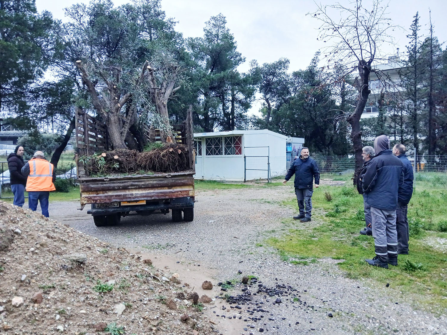 Πρώτος σταθμός η πλατεία Ρίτσου όπου η Διεύθυνση Πρασίνου του Δήμου τοποθέτησε αρκετές από τις ελιές της τελευταίας παραλαβής.