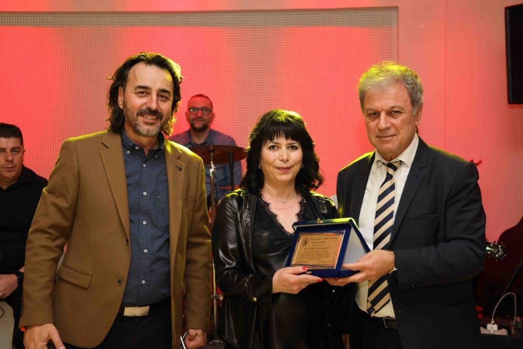 Κατά τη διάρκεια της βραδιάς απονεμήθηκε τιμητική διάκριση στη συνάδελφο Αλίκη Αθανασιάδου για πράξη υψηλού ήθους και εντιμότητας, όπως ανέφερε ο πρόεδρος του Συλλόγου κ. Χριστοφορίδης, καθώς βρήκε και παρέδωσε πορτοφόλι συμπολίτη μας που περιείχε σημαντικά μεγάλο χρηματικό ποσό. Πρόκειται για πράξη που επανέλαβε για δεύτερη φορά, γεγονός που αναδείχθηκε ιδιαίτερα από το Διοικητικό Συμβούλιο του Συλλόγου.