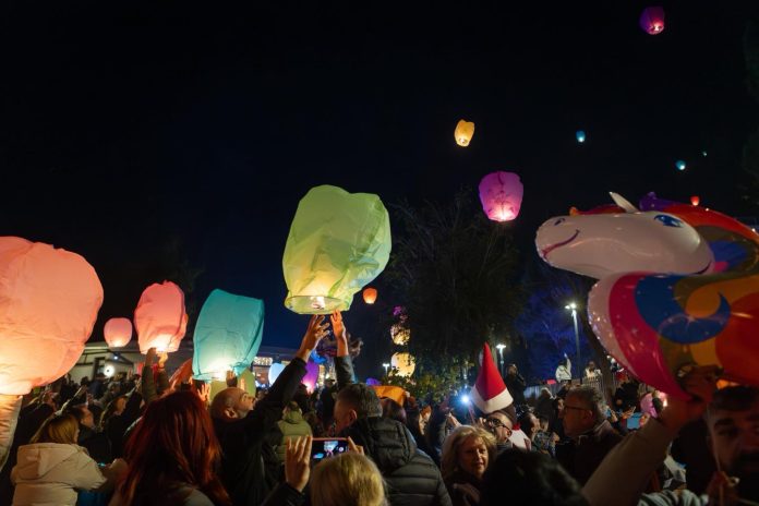 Η πλατεία γέμισε κόσμο, παιδικές φωνές και γιορτινή διάθεση. Οι ευχές ταξίδεψαν ψηλά και η ατμόσφαιρα ήταν χριστουγεννιάτικη, γεμάτη ζεστασιά και αισιοδοξία.
