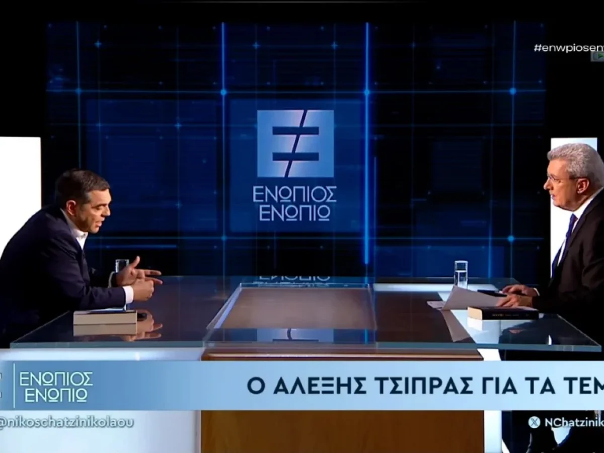 Εφ’ όλης της ύλης συνέντευξη παραχώρησε ο πρώην πρωθυπουργός Αλέξης Τσίπρας στην εκπομπή «Ενώπιος Ενωπίω» και τον Νίκο Χατζηνικολάου, ανοίγοντας τα χαρτιά του για τις τρέχουσες πολιτικές εξελίξεις, το μέλλον του προοδευτικού χώρου, αλλά και τις κρίσιμες στιγμές της δικής του διακυβέρνησης.